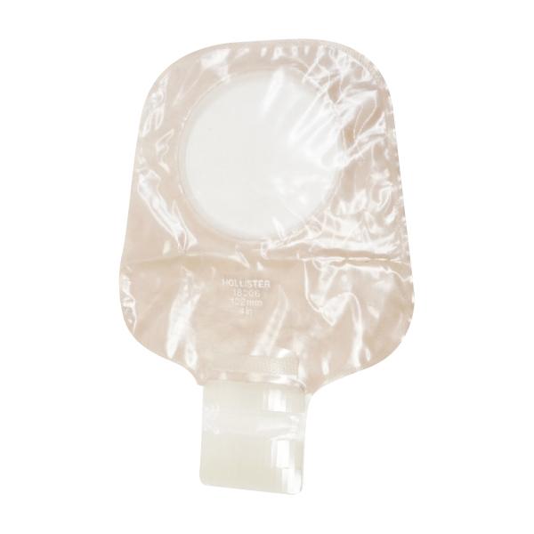 Bolsa drenable ultratransparente New Image Hollister, sistema de dos piezas para colostomía / ileostomía. Cierre seguro, dorso confort, antiolor.